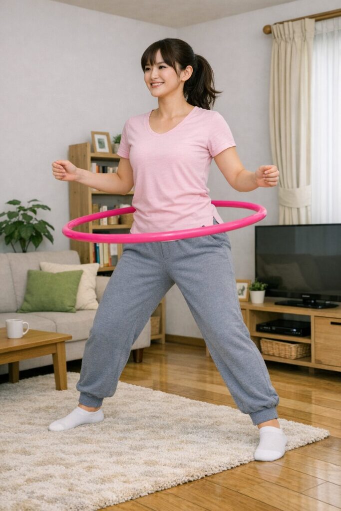 フラフープを回すことで全身の筋肉を鍛えられ、特に体幹の筋力向上に寄与します。